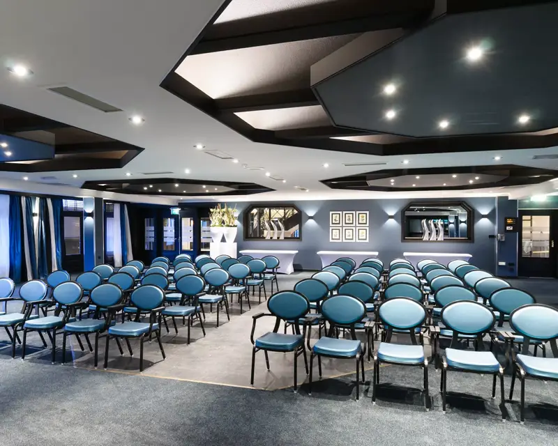This function room (205m2) with many features in setups, can accommodate up to 180 people (theater style). The function room provides opportunities for a variety of purposes, including meeting, training, as well as dining in an intimate atmosphere.