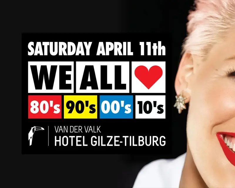 WE ALL LOVE 80’s 90’s 00’s 10’s keert op zaterdag 11 april 2026 terug naar Gilze-Tilburg. In het stijlvolle Van der Valk Hotel Gilze-Tilburg beleef je een avond vol herkenning, gezelligheid en de grootste hits uit de de 80’s, 90’s, 00’s en 10’s.