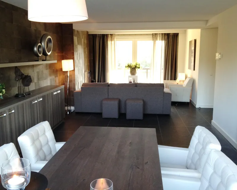 - Ruime zeer stijlvol gemeubileerde living met aan twee of drie kanten balkons of terrassen