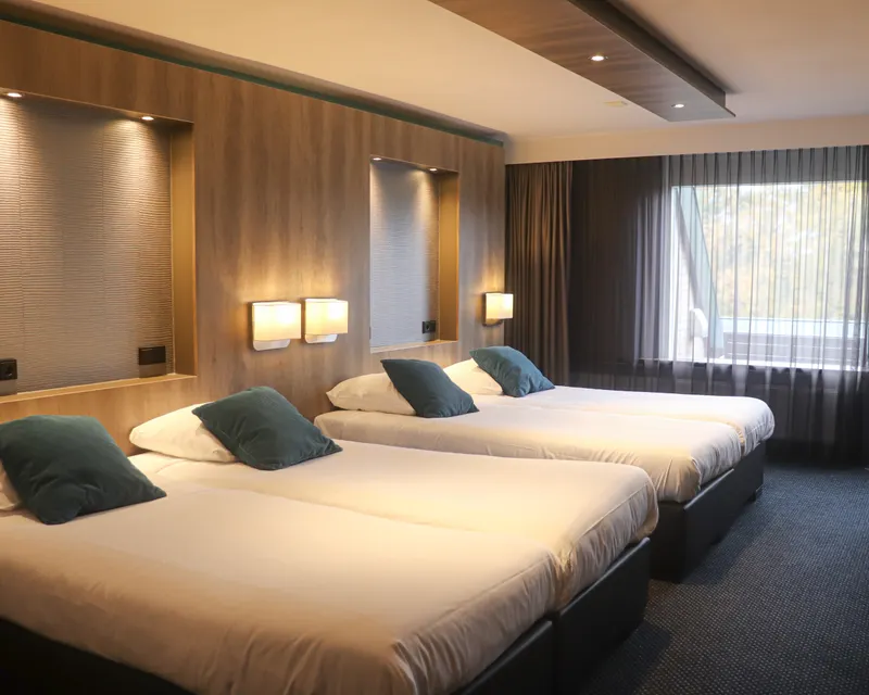 Ruime gezinskamer, geschikt tot 4 personen. 4 bedden, dubbele inloopdouche, toilet, flatscreen met streaming functie (o.a. Netflix), zitje, bureau, koffertafel, safe, telefoon met buitenlijn, föhn. Balkon, strijkplankje, koffie & thee faciliteiten. Tevens gratis breedband wifi, bluetooth music (via uw mobile device) en vrij entree tot onze Toucan Health Club (welness & fitness).